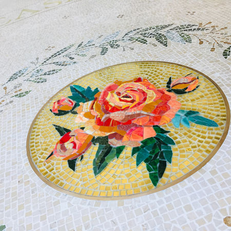 Elevate your outdoor living with our restoration services featuring stripes abstract mosaic art. We transform worn-out tables into striking centerpieces, focusing on geometric Roman-style designs crafted with Giallo Reale marble and blue-smalti accents. Perfectly blending with your home's architecture and landscaping, these designs add sophistication and charm, ensuring your outdoor space becomes a captivating retreat. Experience the elegance of stripes abstract mosaic art today and redefine your outdoor aesthetics.